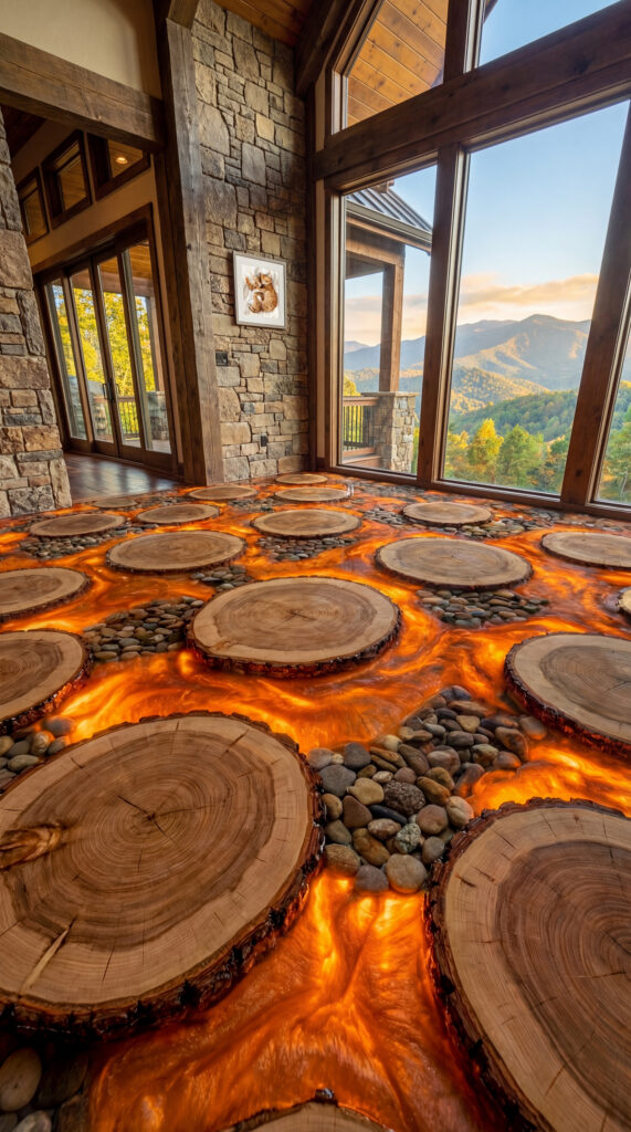 The final result feels alive without being overwhelming. From across the room, it reads as art. Standing on it, it feels solid and calm. A balance between something ancient and something entirely new—fire captured, forest preserved, and a room transformed from the ground up.