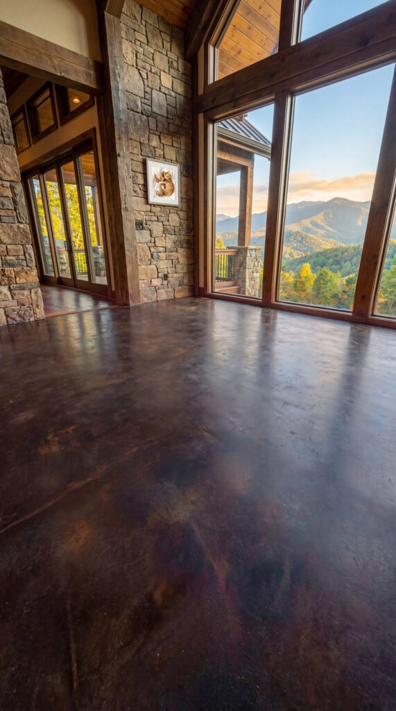 After curing, the entire floor is sealed under a crystal-clear finish. The surface is sanded and polished until it’s perfectly smooth, cool to the touch, and strong enough for daily use. What looks like flowing fire is completely solid—no heat, no movement—just depth, reflection, and light.